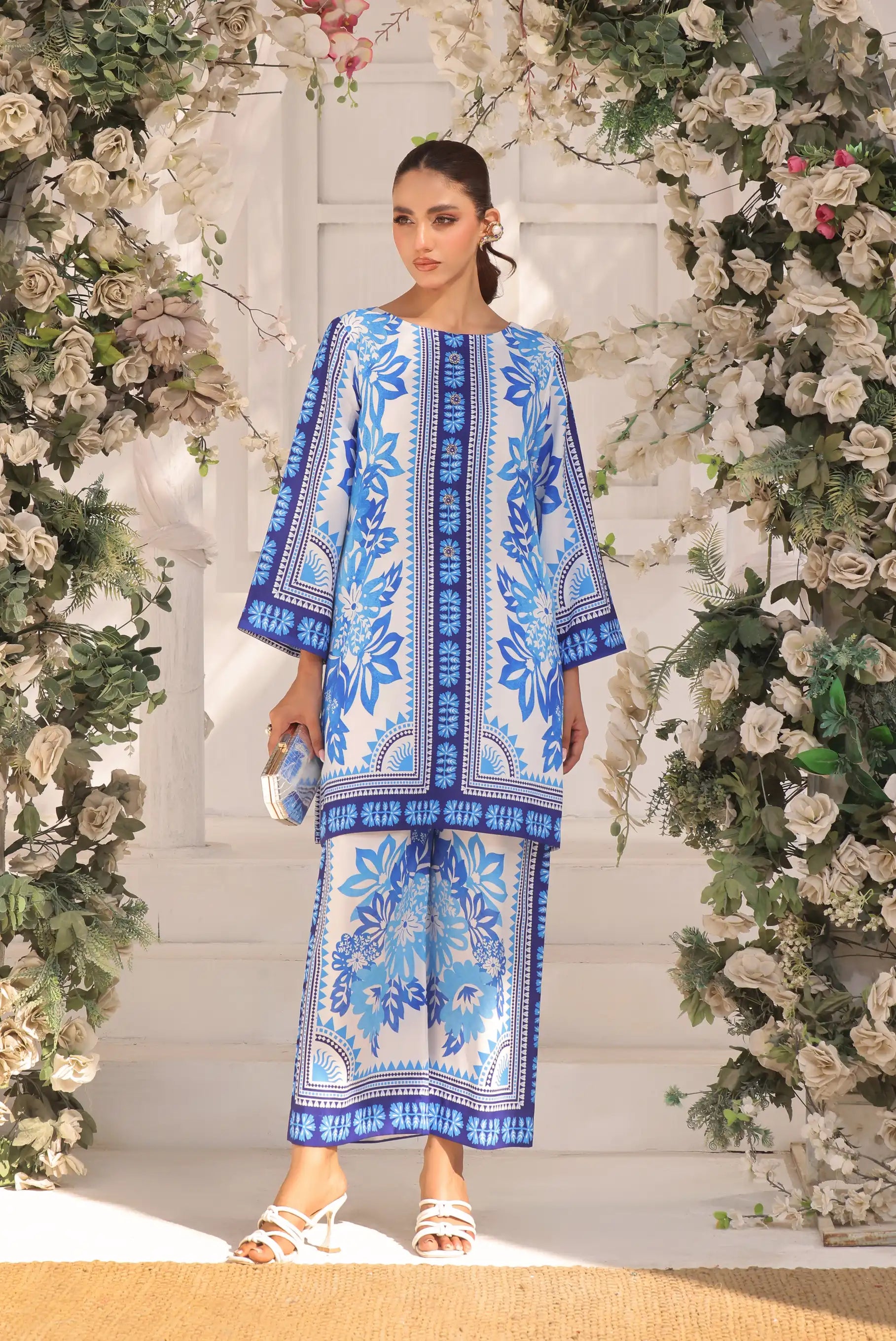 This exquisitely designed lawn silk set blends heritage and contemporary elegance. With complex motifs and outstanding craftsmanship, it offers captivating style, comfort, and a refined, cohesive look for festive or informal events.